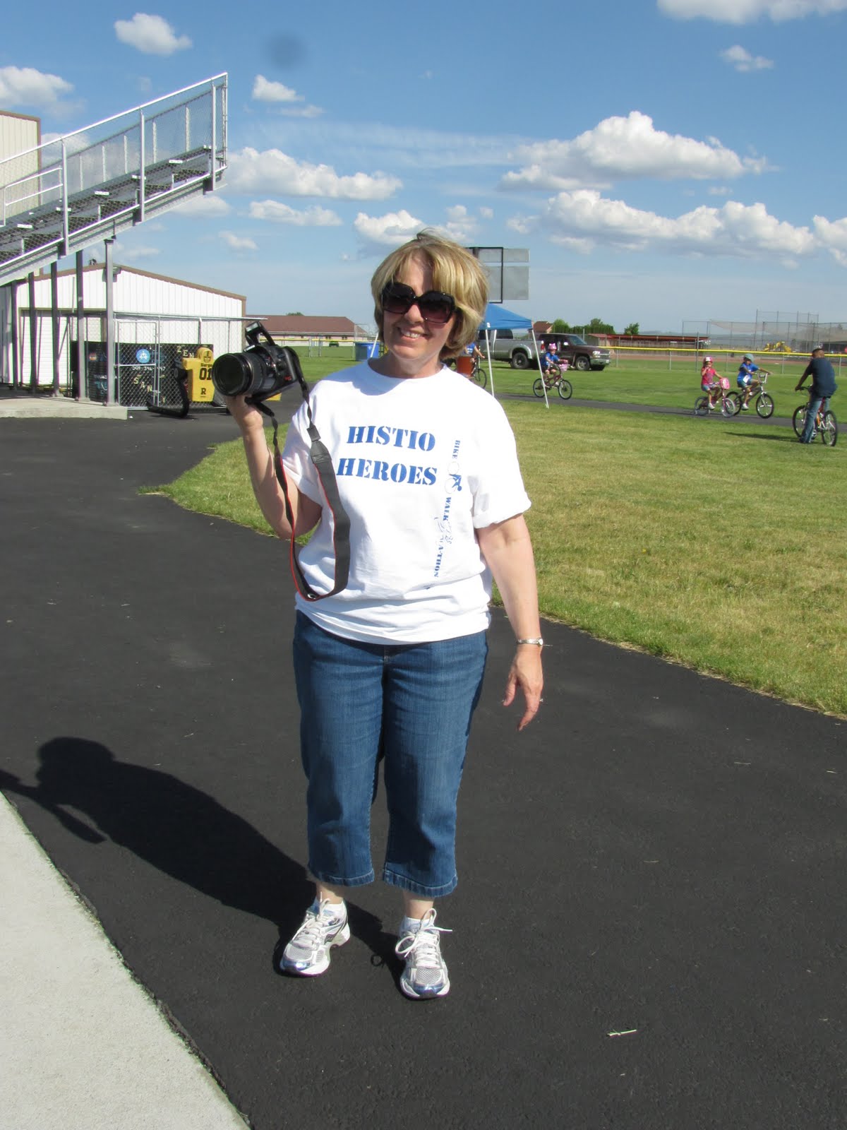 Why is Mother not manning her first aid station? Someone get on the radio and find out who gave her permission to abandon her station---sheesh. I might be overreacting, I'm guessing now from the background that the event might be over, or not started--bikes are going in the wrong direction. I'll look into this before I press charges of abandoning her post.